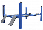 г/п. - 4 т. Для подъема легковых автомобилей всех моделей и марок при их техническом обслуживании и ремонте. Максимальное расстояние между подхватами: 2550 мм. Высота подъема лап (с подхватами): 1800 (1990) мм Длина задних лап: 780-1200 мм. Длина передних лап: 780-1200 мм. Толщина металла в стойках - 5,2 мм, толщина тросов синхронизации - 9 мм. Вес: 630 кг.