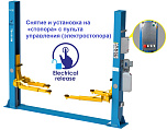 Гарантия 36 мес – наш монтаж, 24 мес – самостоятельная установка. Верхняя синхронизация (чистый пол). Ограничитель подъёма при достижении максимальной высоты. Высота от пола до ограничительной планки 3442 мм. Съем со стопоров ручкой на одной колонне (экономия времени). Поднимает все легковые+Джипы (h=110÷1825 мм). Между колоннами 2800 мм. 220/380В. г/п. 4 тонны.