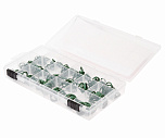Ремкомплект для сервисных портов Шредера. В комплект входит сервисный ключ, ниппеля R-134 6 типоразмеров. Поставляется в пластиковом футляре.