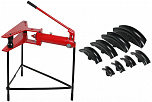 12 тонн. На подставке. Трубогиб для трубы диаметром от 1/2 до 2 дюймов (15-50 мм) с толщиной стенки трубы (2,75-3,5 мм). Ход поршня 230 мм. В комплекте 6 пуансонов: 1/2", 3/4", 1", 1-1/4", 1-1/2", 2".