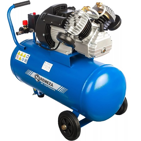 Воздушный поршневой компрессор REMEZA с ресивером 100 л, масляный, двухцилиндровый, мощностью 2,2кВт, Напряжение 220В. Производительностью 400 л/мин с коаксиальным приводом применяется в строительных, автосервисных и медицинских работах.
