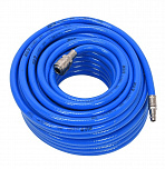Шланг для пневмоинструмента 15м. Материал шланга армированный PVC – не трескается на морозе. Подключение - быстросъем ¼” папа/мама, позволяет быстро менять пневмоинструмент в процессе работы.