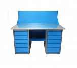 Двухтумбовый. Допустимая нагрузка на столешницу 1000 кг. Опорные элементы выполнены сварными из холоднокатаной стали. Для выполнения сборочных, ремонтных, слесарных, монтажных и других видов работ на производстве, в сервисных центрах, мастерских, гаражах, а также для обучения технологии в учебных заведениях. Комплектуется полкой-стенкой, расположенной под столешницей для удобного размещения габаритного инструмента и оснастки. Размеры верстака: 855x1596x696 мм. Вес: 82 кг. Поставляется в 4 комплектациях на выбор.