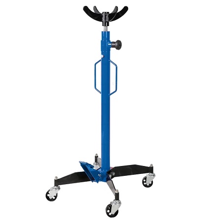Плавная регулировка высоты. Педаль подъема. Клапан спуска. Две ручки для перемещения. 4 поворотных колеса с подшипниками обеспечивают легкость перемещения. г/п 500кг. Подъём 1120-1880мм. Для монтажа агрегатов и трансмиссии в легковом автосервисе или гараже