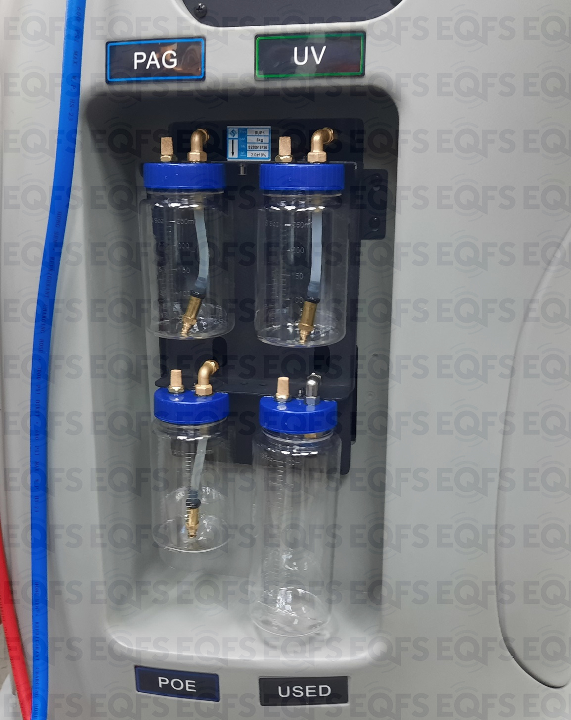 В колбы заливают масло, соответствующее маркировке (PAG или POE).