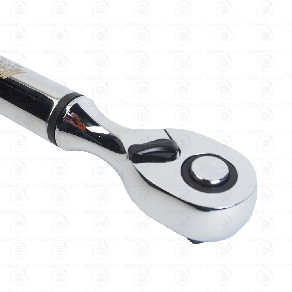 Ключ динамометрический с цифровой индикацией. Храповый механизм на 72 зуба, угол поворота 5'. Посадочный квадрат: 1/2". Диапазон усилий затяжки: 17-340 Н·м. Длина 666 мм. Цифровое считывание значения крутящего момента с функцией запоминания на 30 ячеек памяти. Жидкокристаллический экран с подсветкой. Мигание светодиода и звуковой сигнал. Если крутящий момент достигает 90% от предустановленного значения включается вибрационный сигнал.