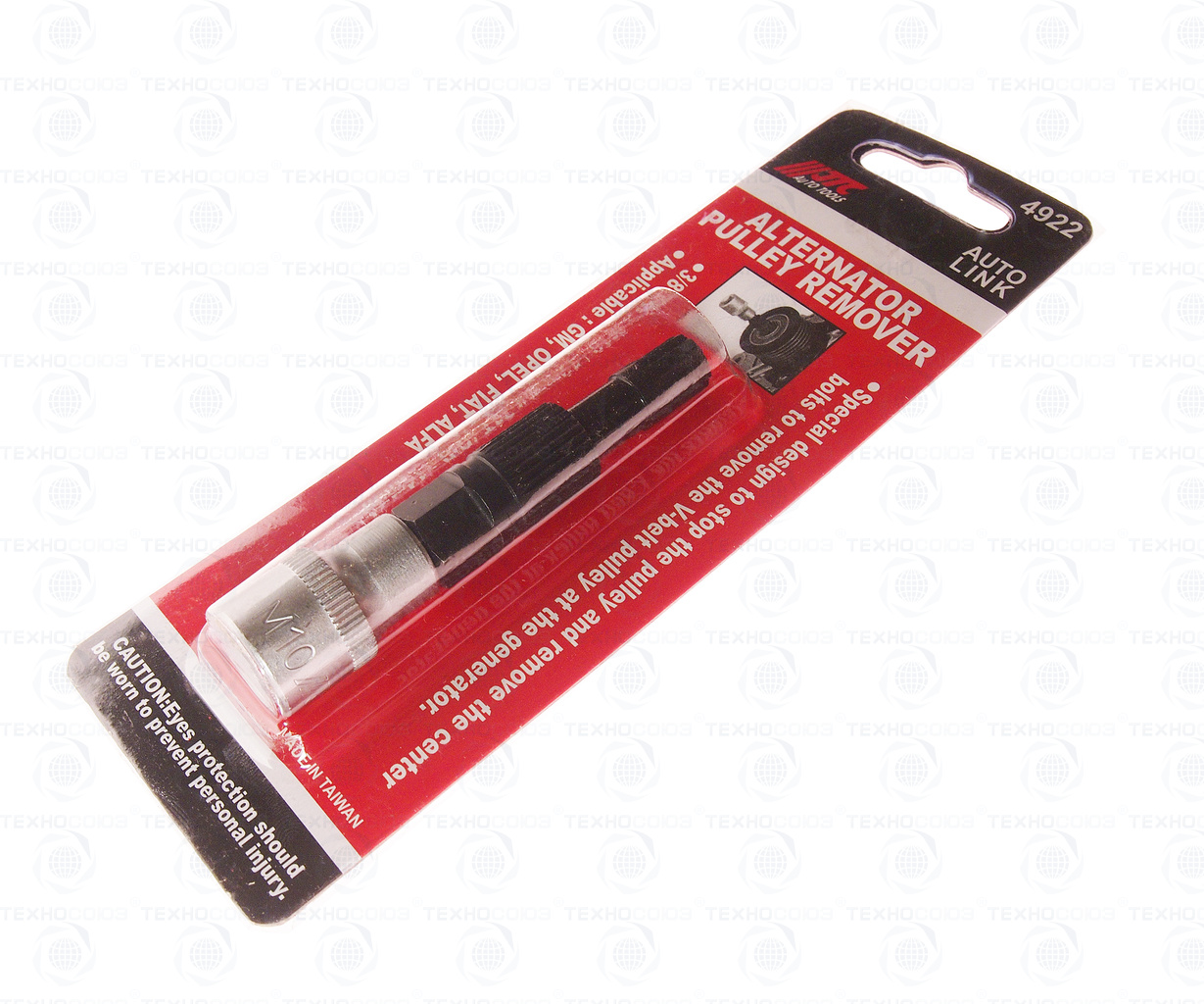 Специально предназначен для фиксации шкива и откручивании центральных болтов для снятия клинового приводного ремня генератора Размер: 3/8", xMIO/12 мм. x 31T (внешний диаметр 14 мм.). Применение: GM, Опель (Opel), Фиат (Fiat), ALFA. Габаритные размеры: 170/60/20 мм. (Д/Ш/В) Вес: 88 гр.