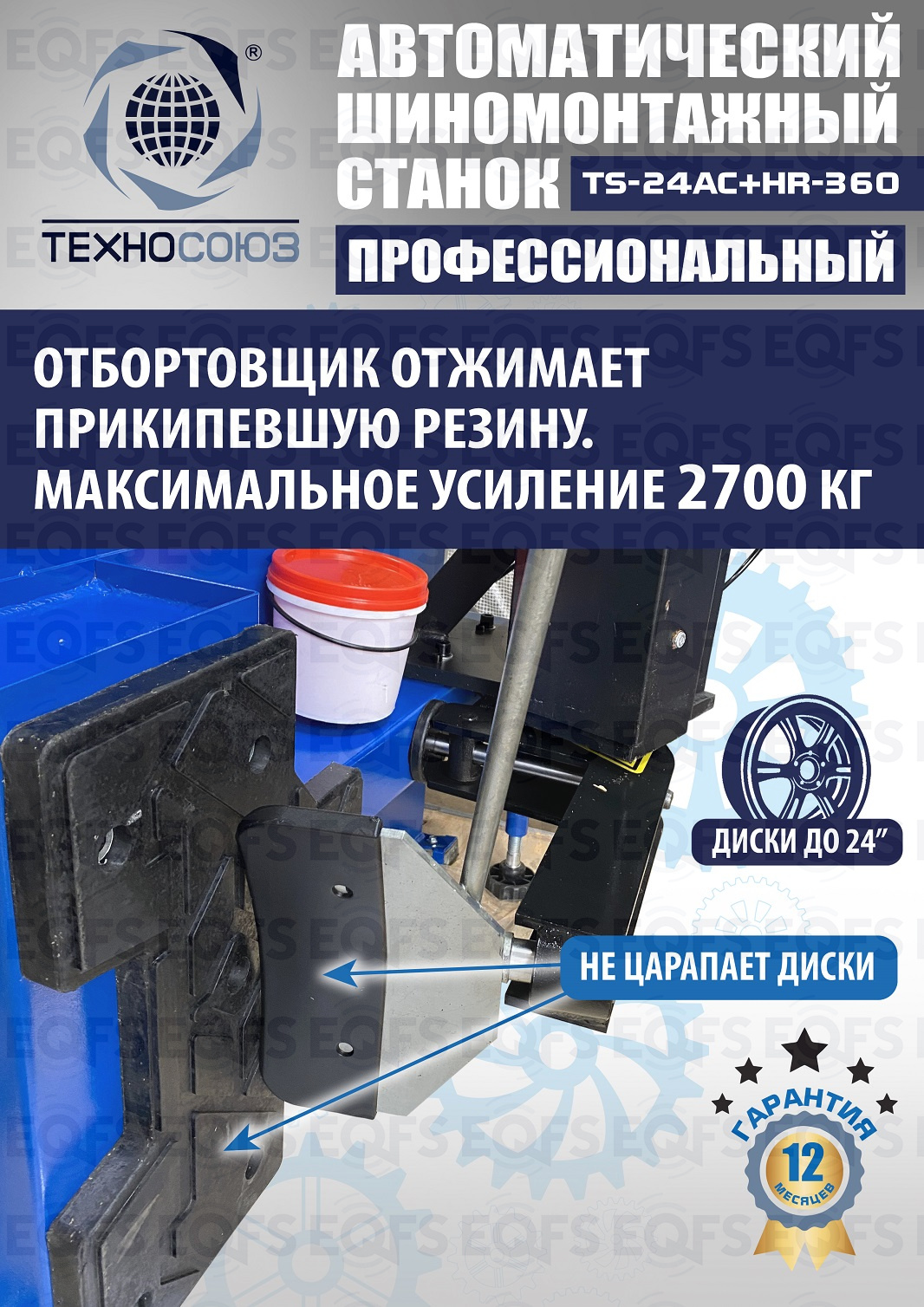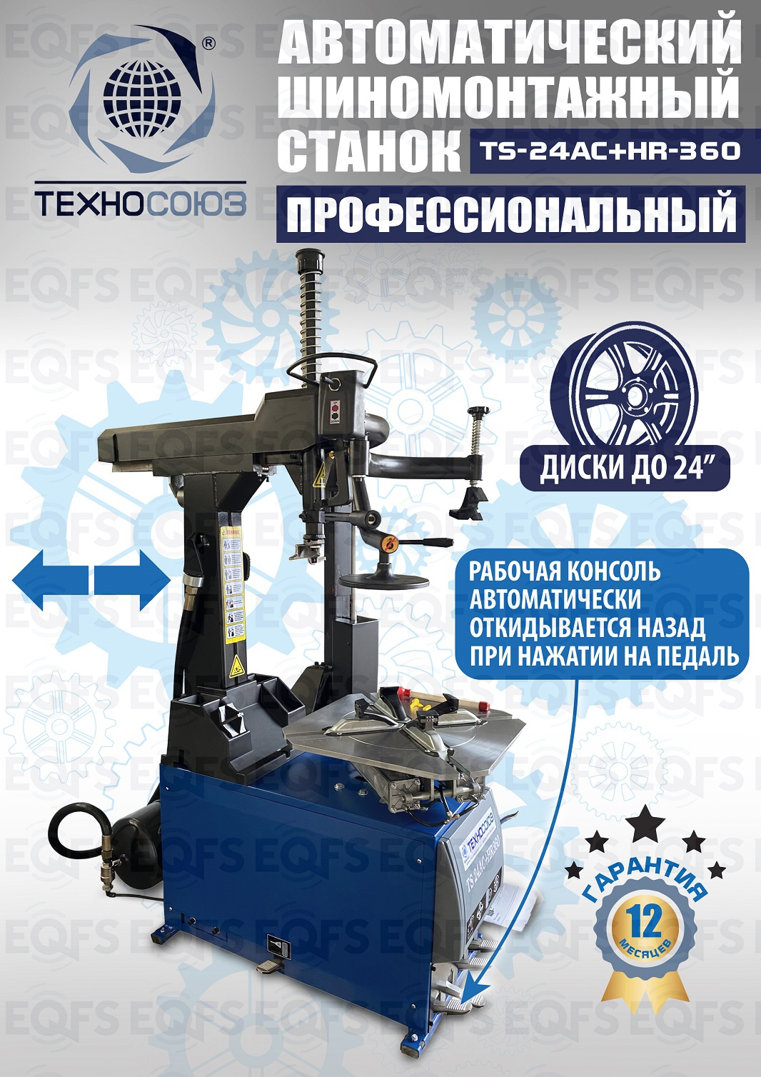 Автоматического шиномонтажного стенда TS-24AC+HR-360. В комплекте взрывная подкачка + третья рука для работы с низкопрофильными шинами и RanFlat! Для колес легковых автомобилей, легких грузовиков, микроавтобусов и коммерческой техники. Для дисков: внешний 10÷21”, внутренний 12÷24”. Напряжение 220/380В. Гарантия 18 мес. – наш монтаж, 12 мес. – самостоятельная установка.
