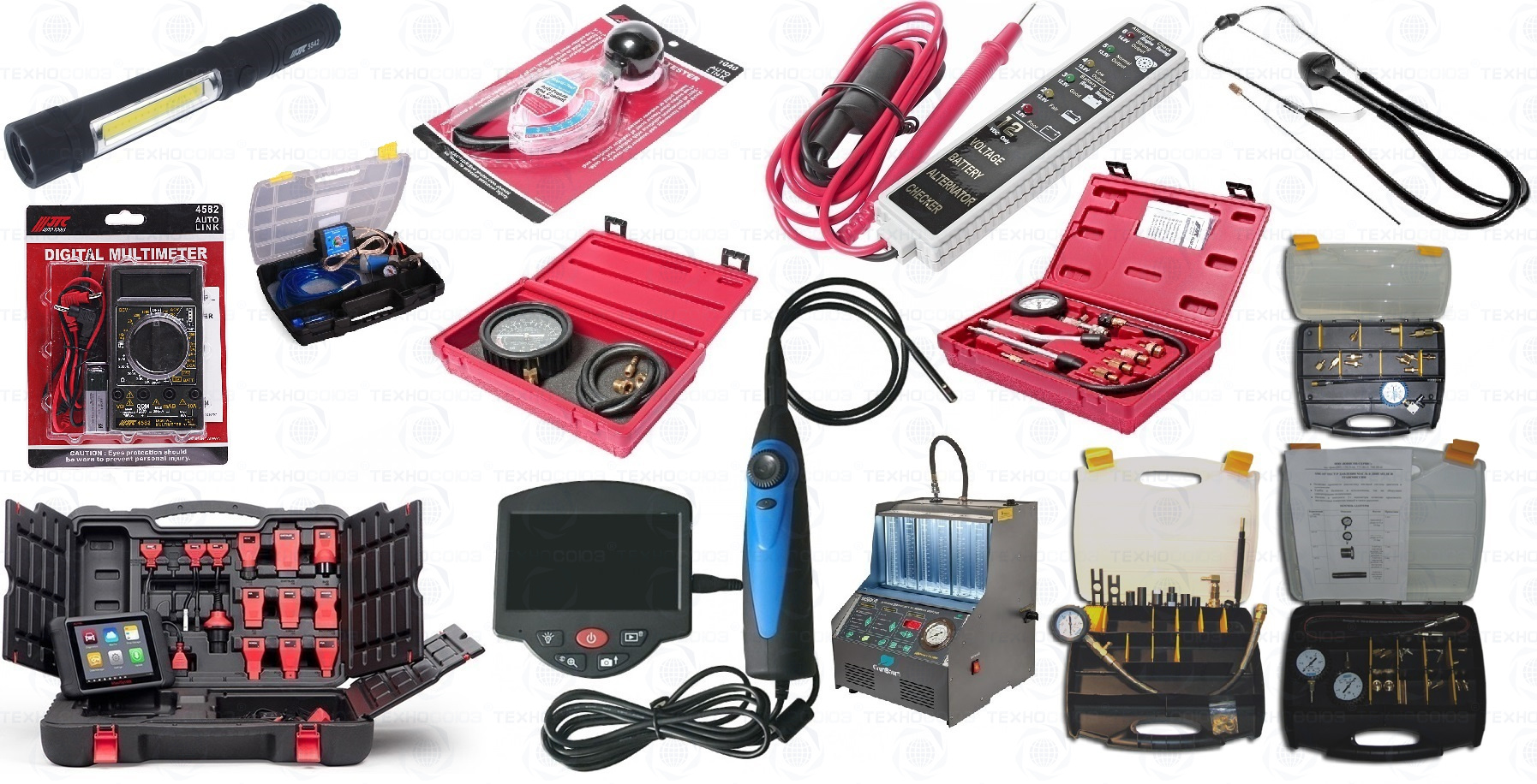 Для диагностики легковых автомобилей и легкого коммерческого транспорта Вам понадобится следующий комплект: Сканер диагностический Autel MaxiSys MS906 + Стенд для 6 форсунок, GrunBaum INJ6000 + Видеоэндоскоп TVE-500 + JTC-J027 Тестер для АКБ и генератора со световым индикатором + JTC-1921 Стетоскоп механический JTC /1/20/40 + JTC-4582 Мультиметр цифровой + Тестер антифриза (ареометр), JTC-1040 + Тестер давления вакуумного и топливного насосов, JTC-1622 + "G-Smoke" Генератор дыма + SMC-109 Тестер гидроусилителя + Тестер давления масла в двигателе и трансмиссии, SMC-107 + SMC-105 Компрессометр для дизельных двигателей + JTC-4077 Компрессометр для бензиновых двигателей с набором адаптеров + Лампа переносная 3W светодиодная JTC-5542.
