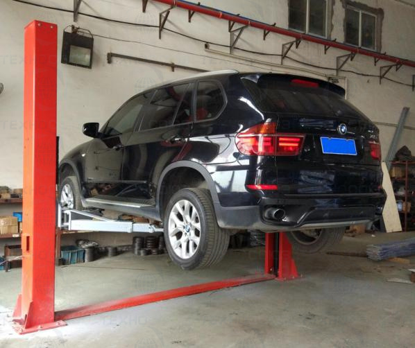 Колонны подъемника оснащены стопорным механизмом, предотвращающим падение автомобиля.
